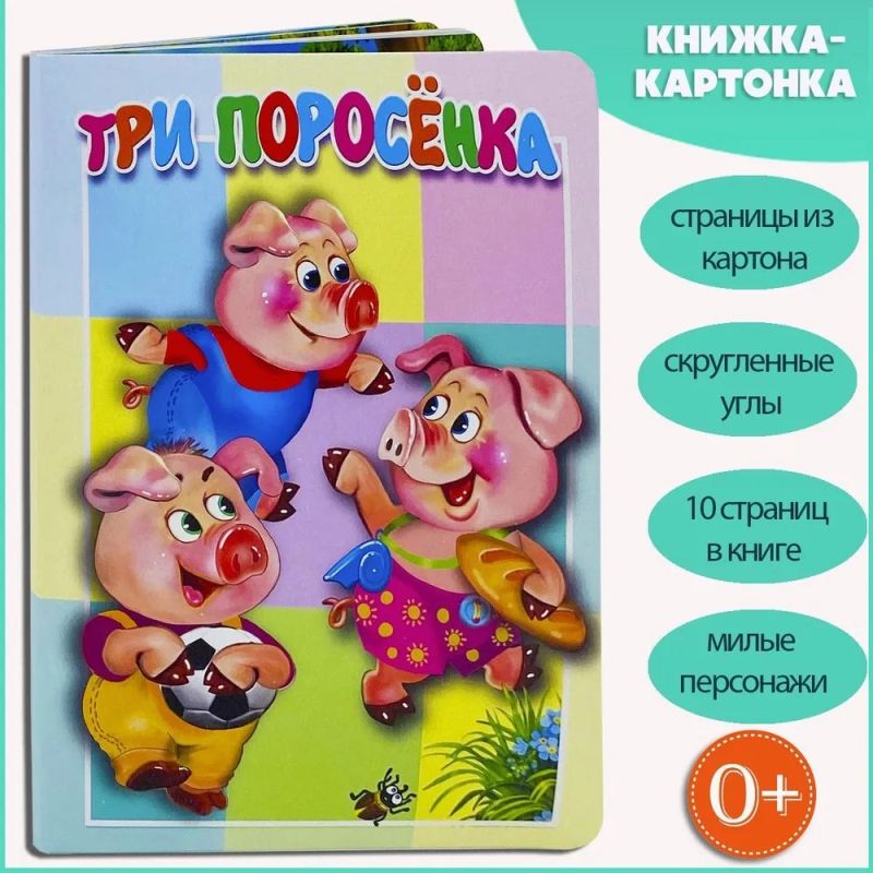 Сказка Три поросёнка для малышей в стихах. Это книги для малышей от 0 до 3 из картона. Их невозможно порвать. Сказки для малышей с большими яркими картинками, которые малыш с удовольствием будет рассматривать. Углы книг скруглены для безопасности. Русские народные сказки, милые и добрые , они помогают рассказать детям, что такое дружба, любовь, радость, взаимовыручка, добро и зло. В серии КНИЖКА КАРТОНКА собраны детские книги для малышей на разные темы: сказки, потешки, загадки, азбука, стихи для малышей, машинки, животные, буквы. Детские книжки - это не только прекрасный способ провести время перед сном вместе с мамой или папой, но и важный элемент развития ребенка.